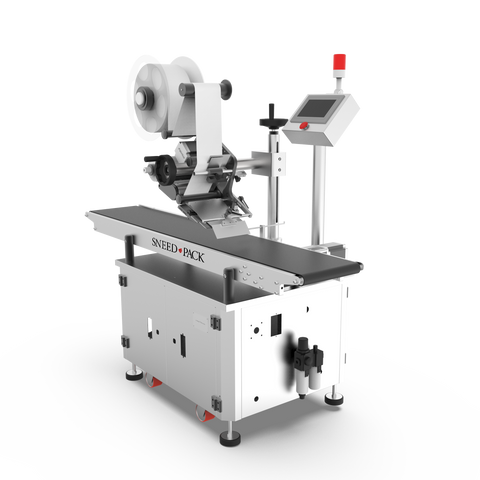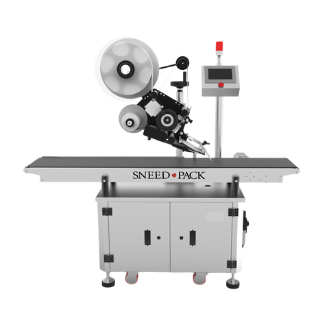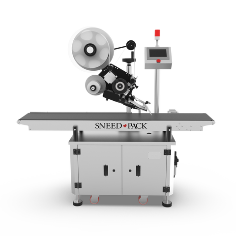 Are you tired of wasting time correcting crooked labels, attempting to release trapped air bubbles, or even straightening out folded labels? With a high-speed SNEED-PACK® Top-Down Label Machine, 20-120 products can be perfectly labeled per minute; in addition, the label machine’s conveyor can run at speeds of up to 30 meters per minute. Other label applicators will struggle to apply labels to uneven or recessed surfaces; however, the SNEED-PACK® Top Down Label Machine ensures a smooth label application each and every time. Just like with other SNEED-PACK® equipment, this high-speed top-down label applicator can be easily integrated into your existing production line. If your product is 10-500mm long, 10-250mm wide, 10-200mm high, and you’re looking to apply a label between 10-400mm long and 10-170mm wide, then the SNEED-PACK® Top-Down Label Machine can help you #KeepLabelingSimple.
